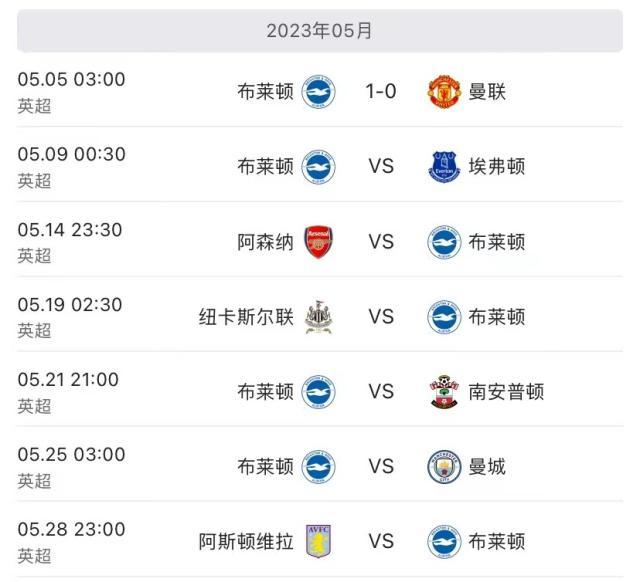 好在曼联在本场过后,剩余联赛的5个对手大多是中下游球队,排名最高的是暂列联赛第10的富勒姆。与他们相比,布莱顿的联赛收官阶段堪称魔鬼赛程:海鸥军团的最后6场比赛,对手既包括争冠的阿森纳和曼城,也有仍在为欧战区而战的纽卡斯尔联和阿斯顿维拉,剩下两个对手则是正在保级军团玩儿命的埃弗顿和南安普敦。有球迷打趣道:“我几乎从没见过有这样一支球队能同时对英超的争冠,争四和保级大战在最后6轮同时产生如此巨大的影响!”