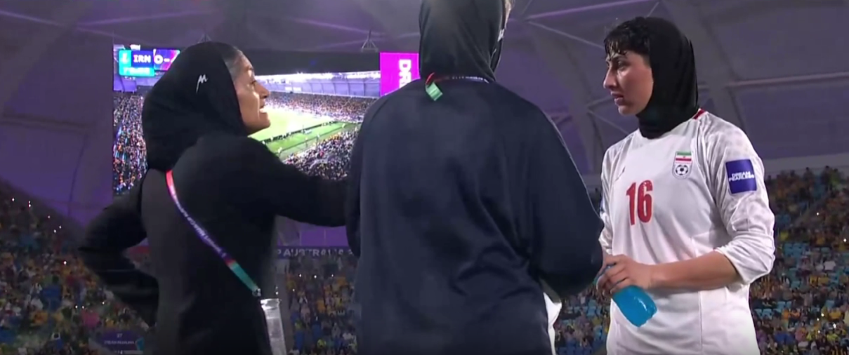 在比赛中现在也下起了大雨,在赛前后时候,很多伊朗女足的球员曾表示自己忧心自己的在伊朗国内的家人,所以她们也根本无心恋战。澳大利亚队其实可以打进更多进球,裁判吹掉了澳大利亚两个球,还有一个体毛级越位,并且澳大利亚队的“打空门”还有2个,所以说,4-0的比分,已经是烧高香了。